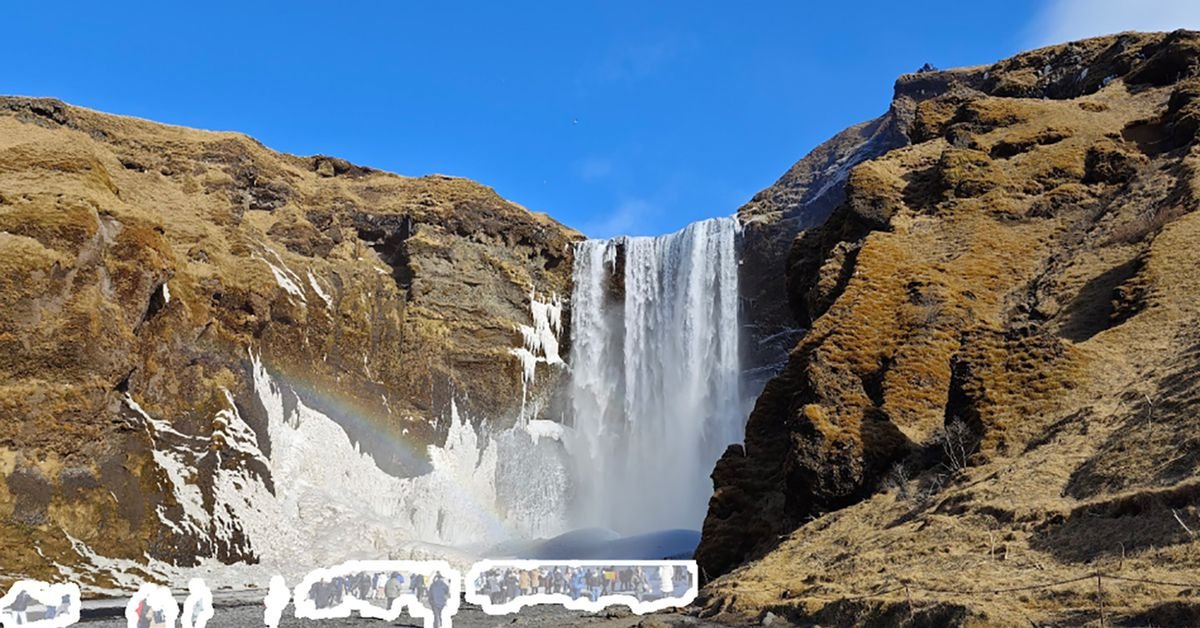 The picture I took of Skógafoss—the one I attempted to wash utilizing synthetic intelligence—was really my least favourite picture of the day. After taking that “that is what’s well-known for” picture, I walked round looking for some totally different angles and fascinating particulars to focus my digicam on. A pair of birds nest on a mossy rock wall and a girl in a purple coat and trousers poses for the digicam with a selfie stick, capturing a view of the blue sky by way of the mist close to the bottom of a waterfall: they’re My favourite picture from that day. They’re the photographs that greatest seize the sensation of being there.